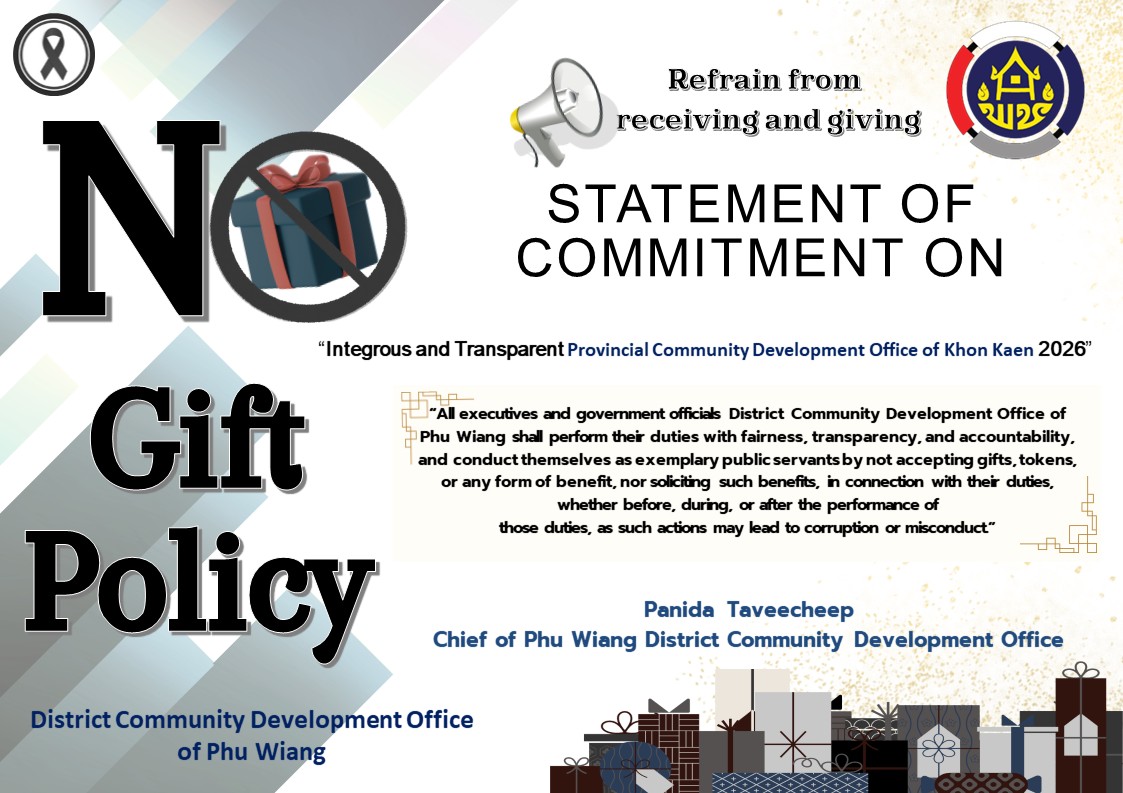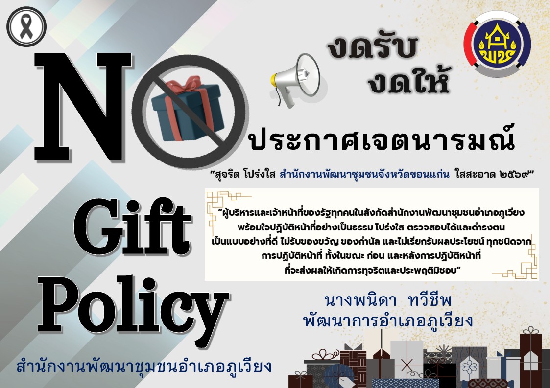 ประกาศเจตนารมณ์นโยบาย No Gift Policy สำนักงานพัฒนาชุมชนอำเภอภูเวียง
